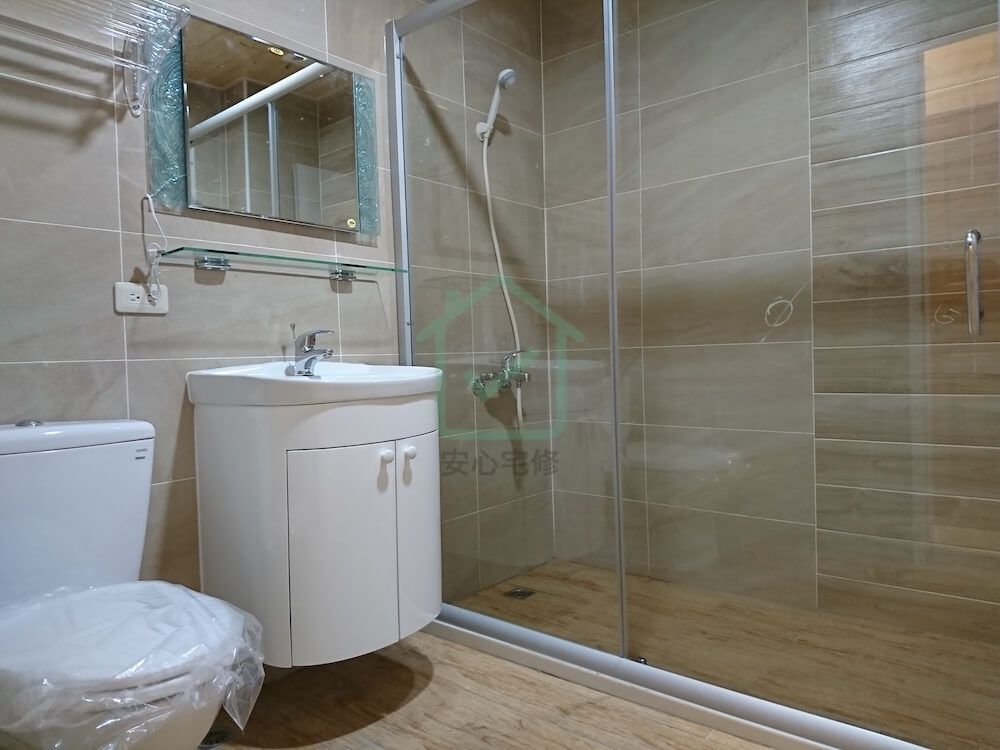 整修需求:拆除、運棄、水電、門扇、鋁窗、泥作、6層防水(含防水保護)、磁磚、衛浴、天花板、廚具、鐵材、油漆