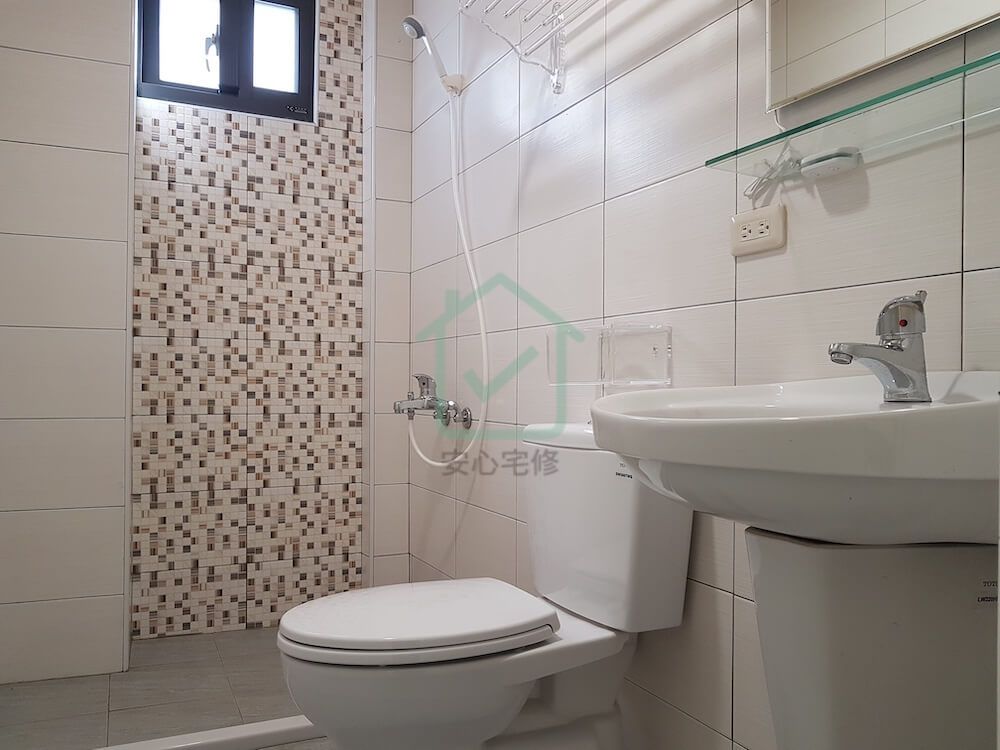 整修需求:拆除、運棄、水電、門扇、鋁窗、泥作、6層防水(含防水保護)、磁磚、衛浴、天花板、廚具、鐵材、油漆