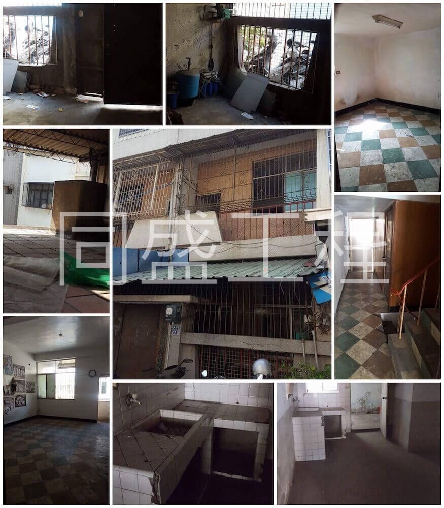整修需求:拆除、運棄、水電、門扇、鋁窗、泥作、6層防水(含防水保護)、磁磚、衛浴、天花板、廚具、鐵材、油漆