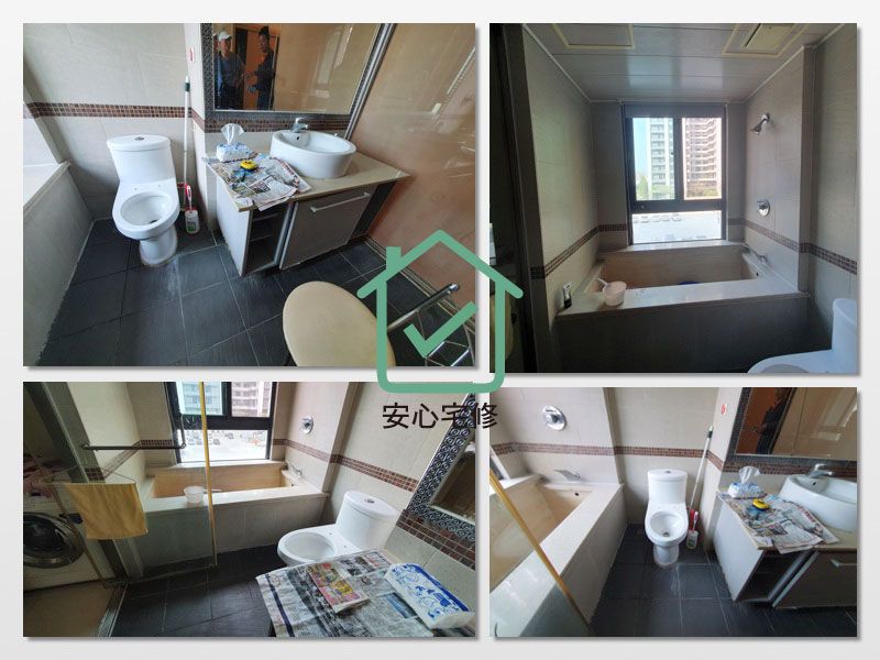 整修需求:拆除、運棄、水電、泥作、6層防水(含防水保護)、磁磚、衛浴設備、天花板、冷氣、油漆、壁紙