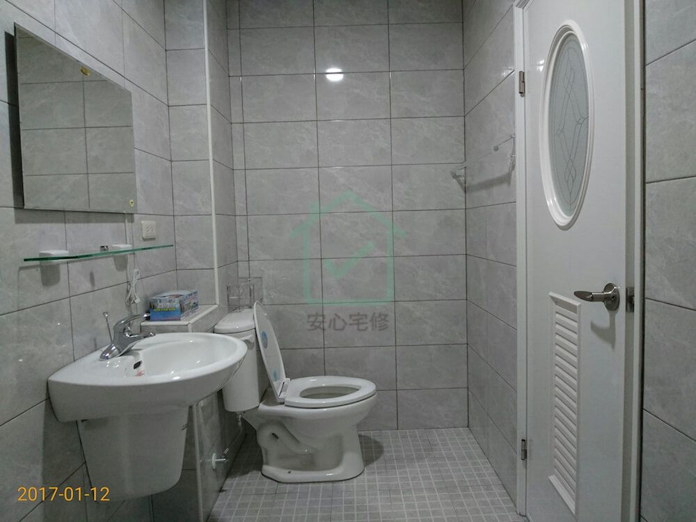 整修需求:拆除、運棄、水電、門扇、鋁窗、泥作、6層防水(含防水保護)、磁磚、衛浴、天花板、廚具、鐵材、油漆