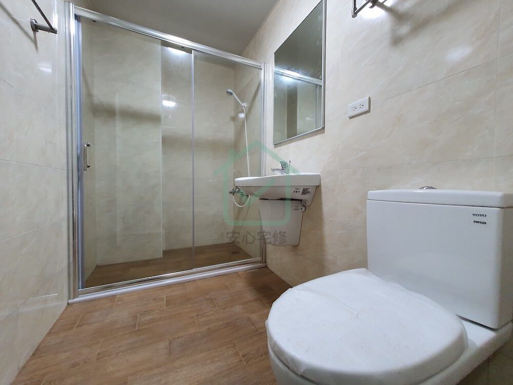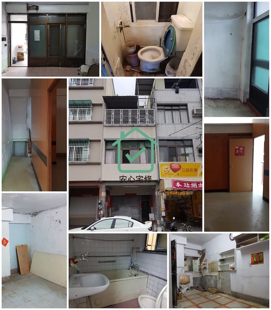 整修需求:拆除、運棄、水電、門扇、鋁窗、泥作、6層防水(含防水保護)、磁磚、衛浴、天花板、廚具、鐵材、油漆